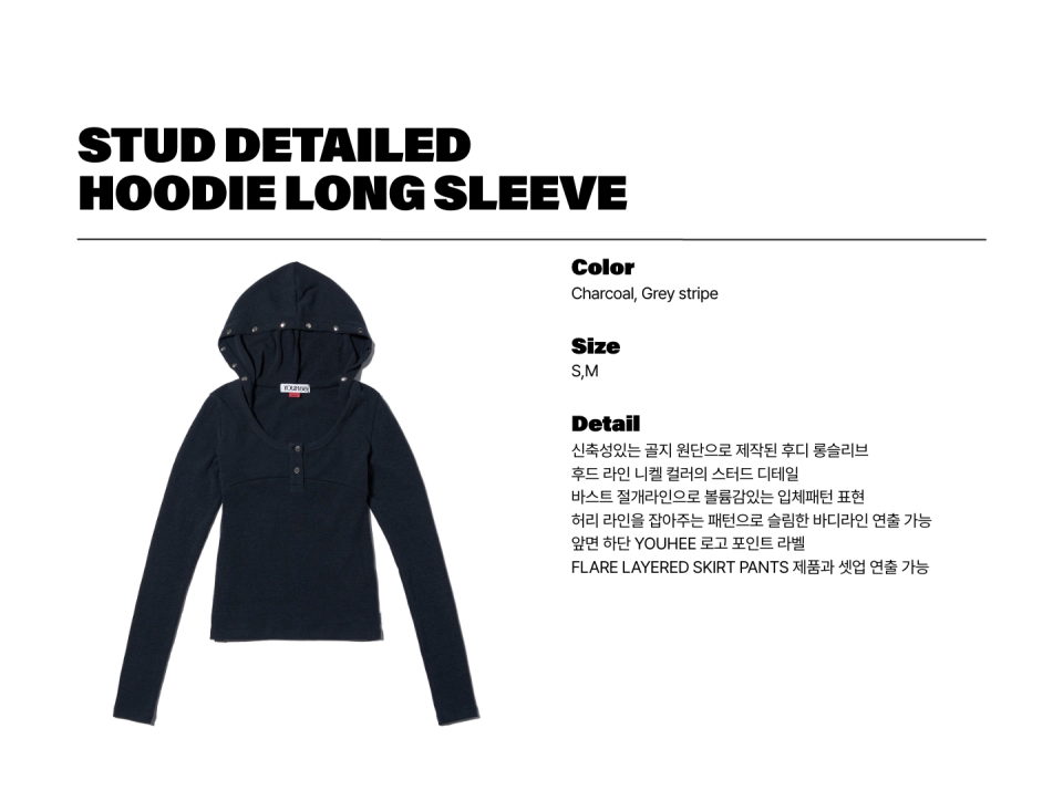 STUD DETAILED HOODIE LONG SLEEVE CHARCOAL
