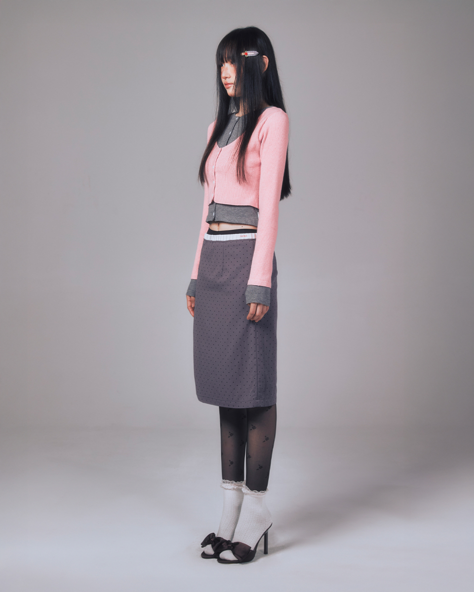 BASIC SHIRRING KNIT SKIRT WINE