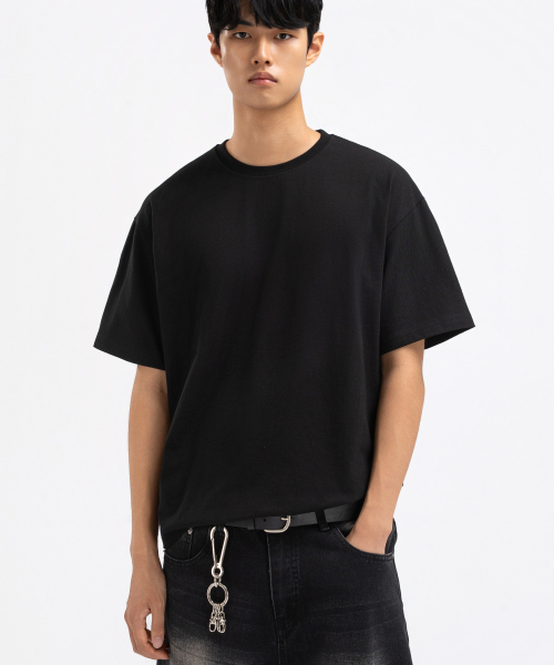 맨즈 코튼 반팔 크롭티 블랙