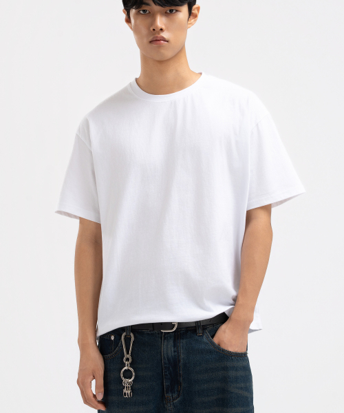 맨즈 코튼 반팔 크롭티 화이트