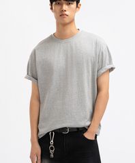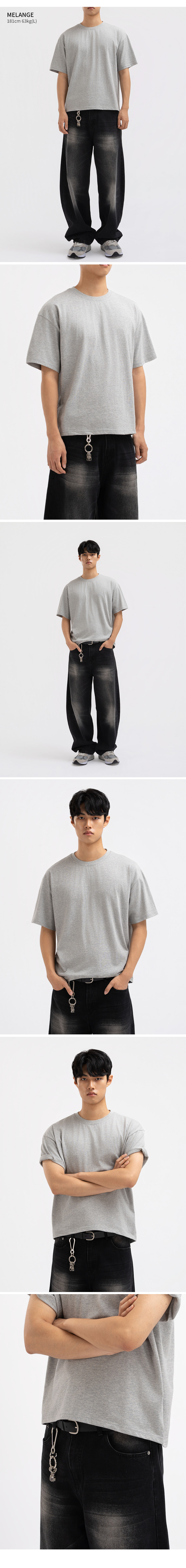 맨즈 코튼 반팔 크롭티 멜란지