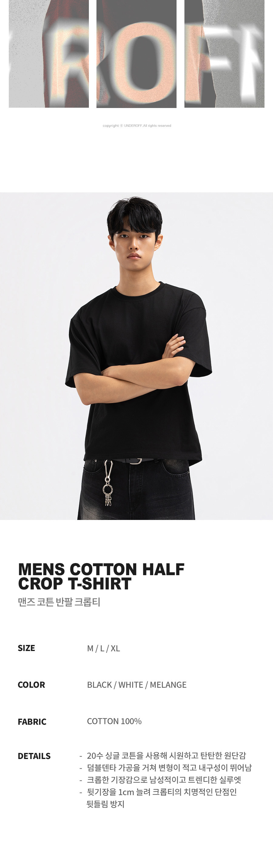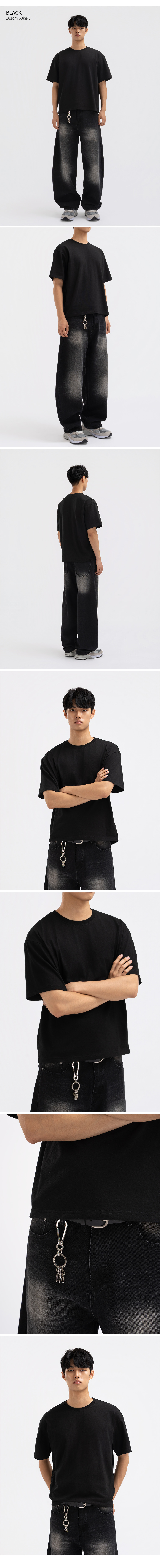 맨즈 코튼 반팔 크롭티 블랙