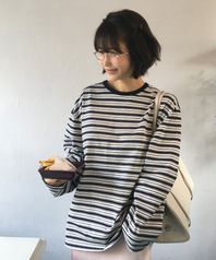 [쁨이 PICK] STRIPED ROUND-NECK T-SHIRT_NAVY