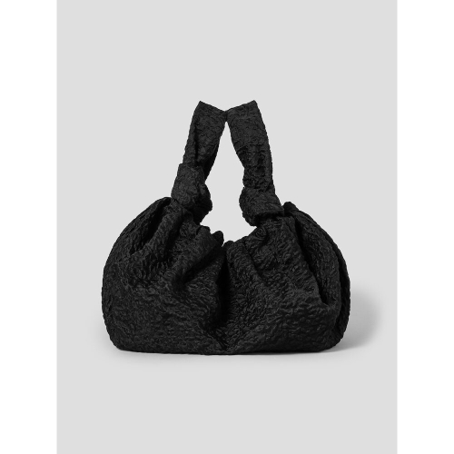 조직감이 있는 고급스러운 자카드 소재의 패브릭 가방입니다. 심플한 호보백 형태에 양쪽 손잡이에 매듭으로 포인트를 더했습니다. 여밈은 자석으로 깔끔하게 마감하였으며, 패브릭으로 가벼워 데일리하게 착용하기 좋습니다.