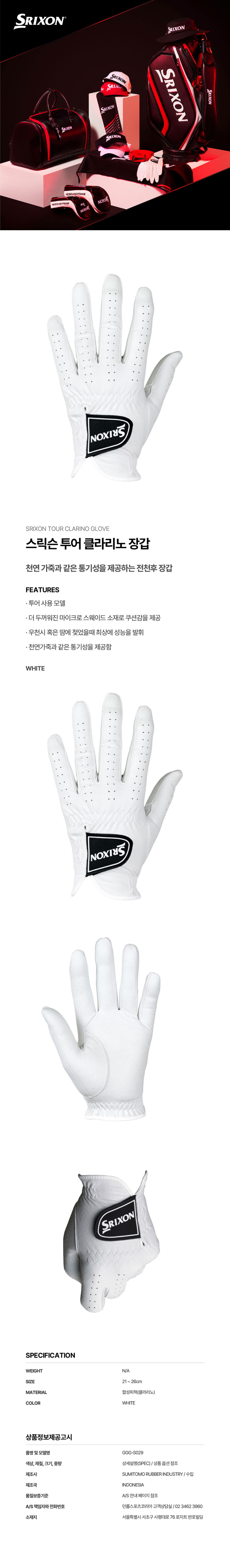 스릭슨 투어 클라리노 골프 장갑 GGG-S029