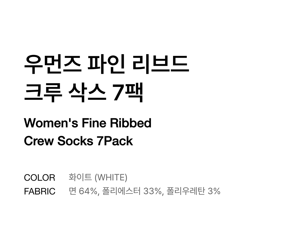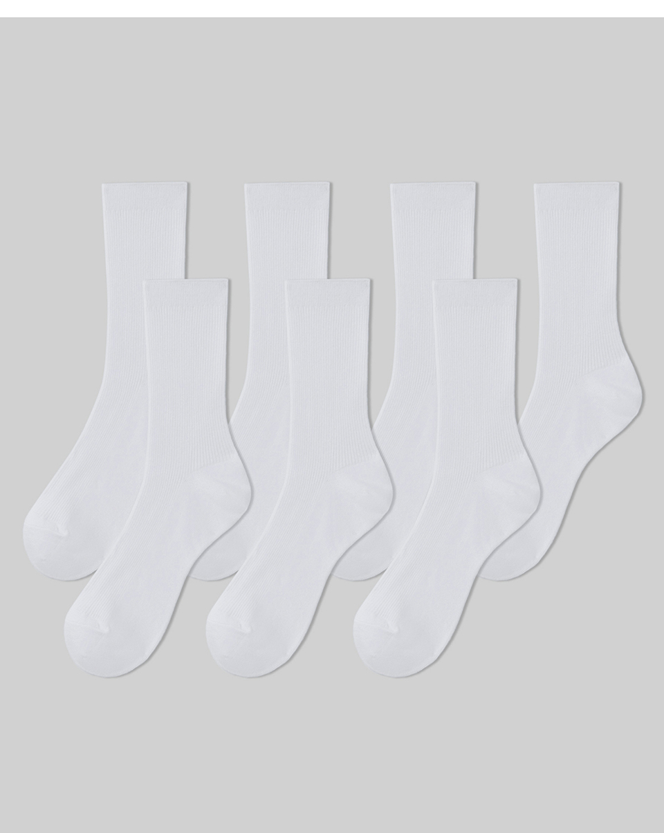 우먼즈 파인 리브드 크루 삭스 7팩 [화이트]