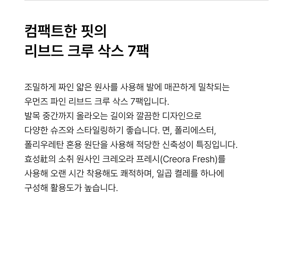 우먼즈 파인 리브드 크루 삭스 7팩 [블랙]