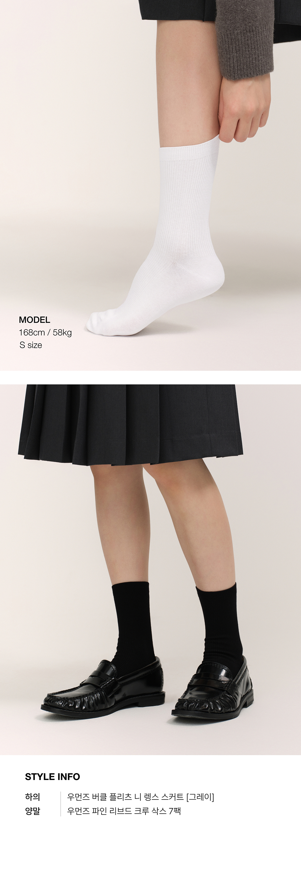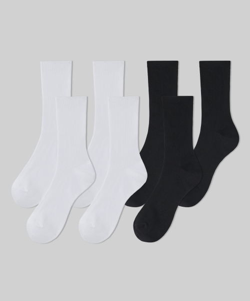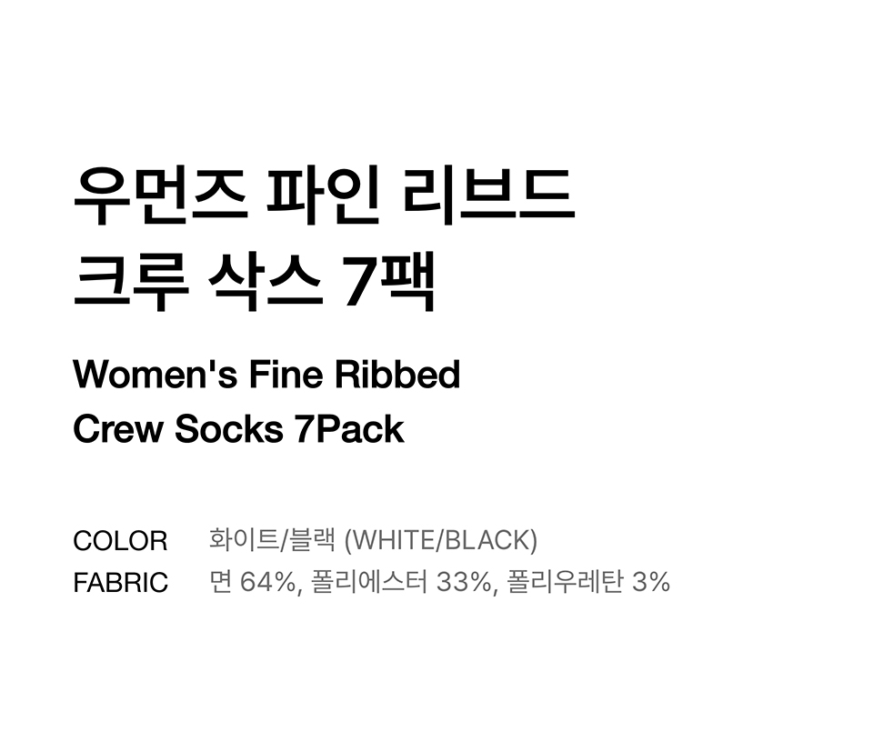 우먼즈 파인 리브드 크루 삭스 7팩[화이트/블랙]