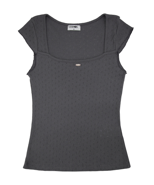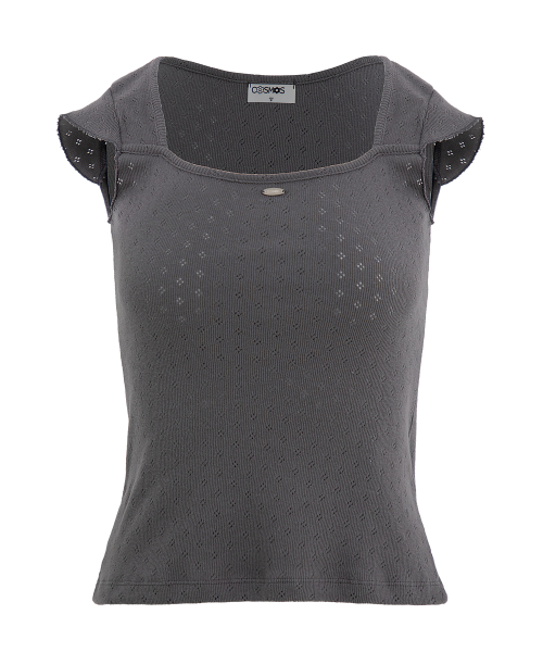 데이지 레이스 숏 슬리브 티셔츠_다크그레이