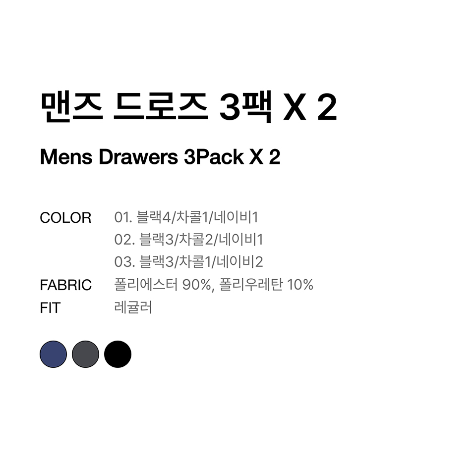 [쿨탠다드] 맨즈 드로즈 3팩 X 2