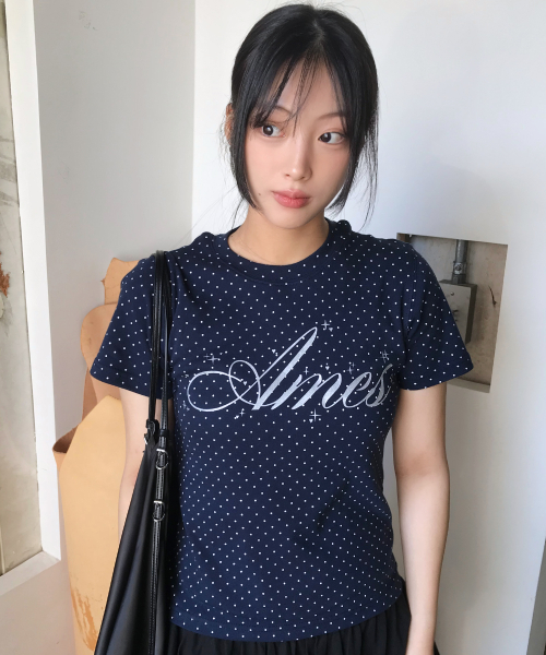 SILVER AMES DOT CROP TEE NAVY