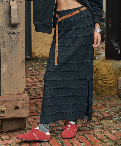 셀리나 슬릿 롱 스커트-라이트 베이지