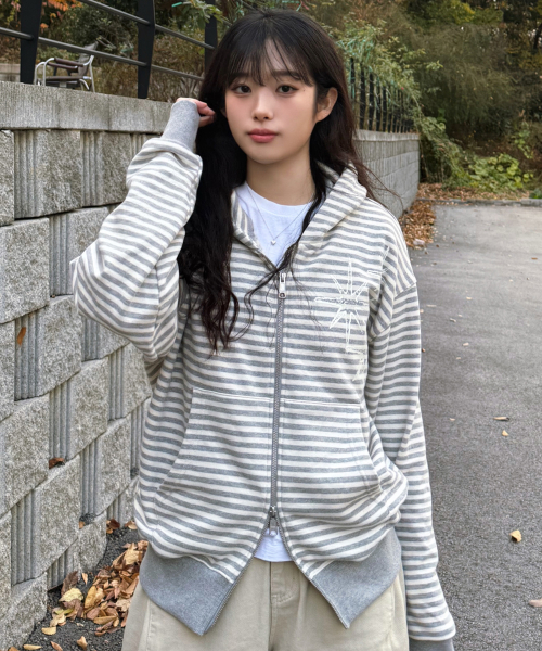 언타이틀 스테리나잇 스몰 스트라이프 후드 짚업 멜란지 화이트