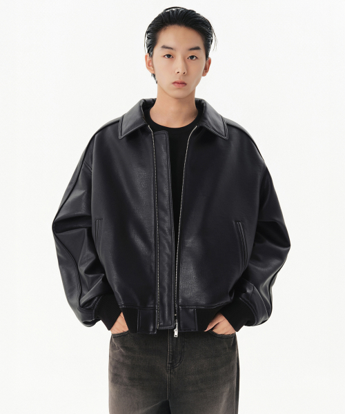 신세틱 레더 오버사이즈 블루종 재킷 [블랙]
