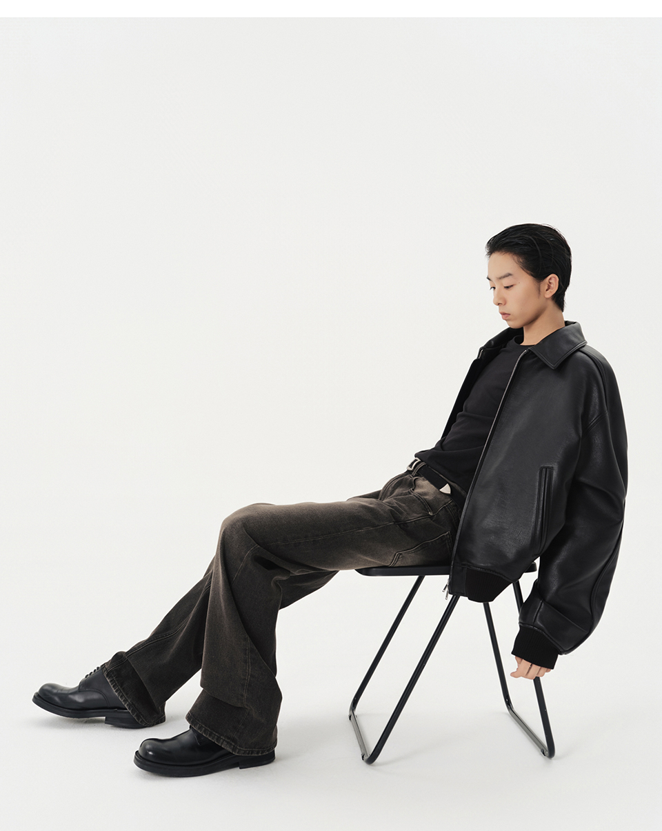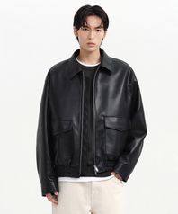신세틱 레더 오버사이즈 에비에이터 재킷 [블랙]