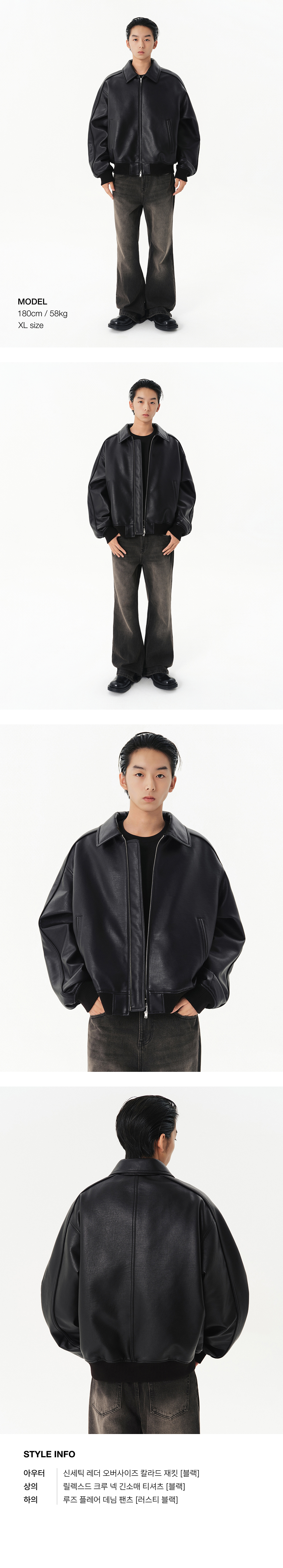 신세틱 레더 오버사이즈 칼라드 재킷 [블랙]