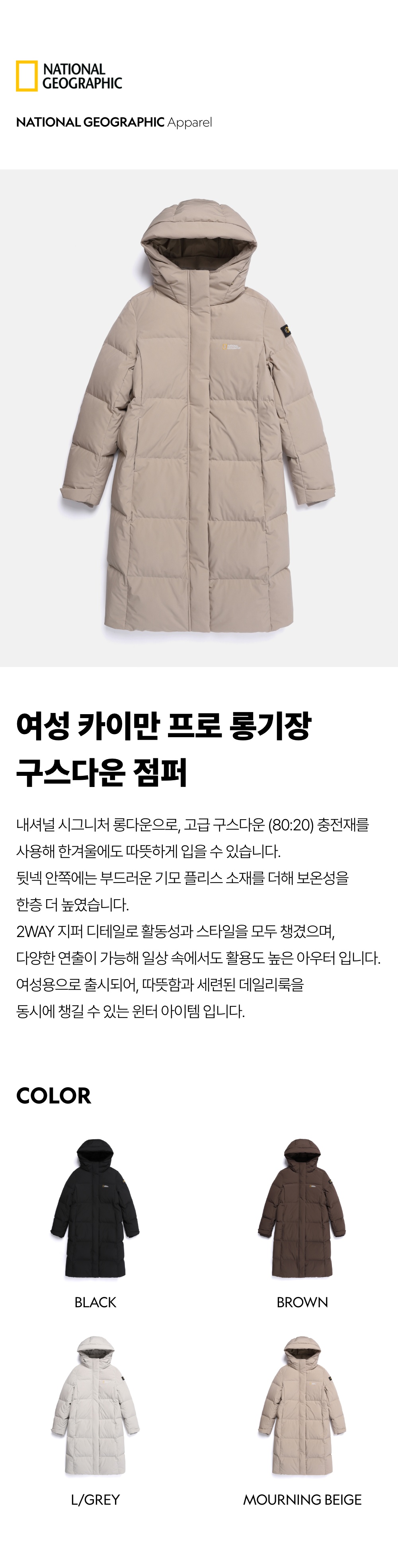 N254WDW860 여성 카이만 프로 롱기장 구스다운 점퍼 MOURNING BEIGE