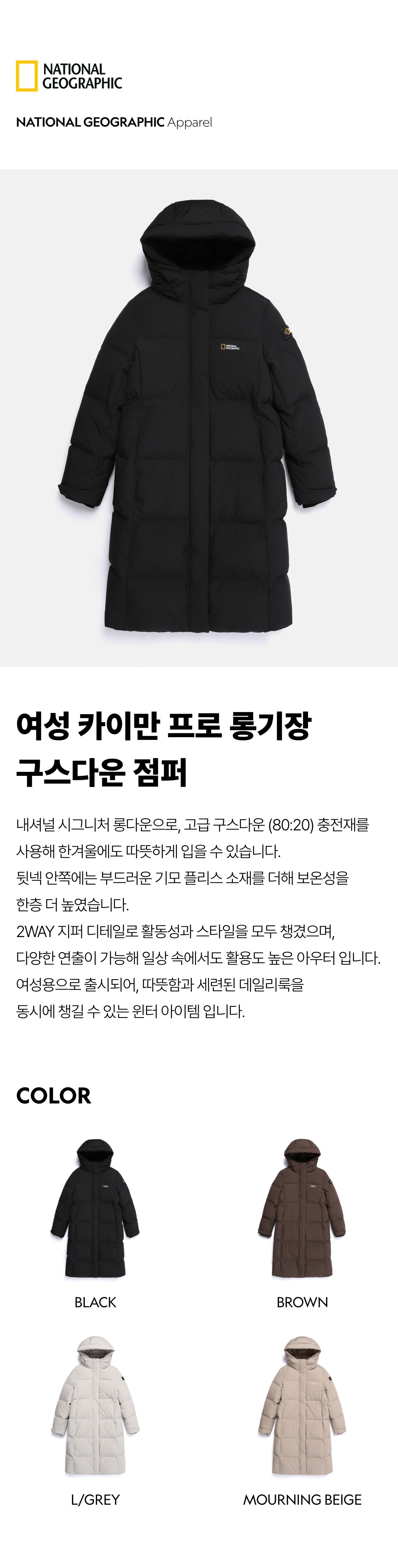 N254WDW860 여성 카이만 프로 롱기장 구스다운 점퍼 BLACK