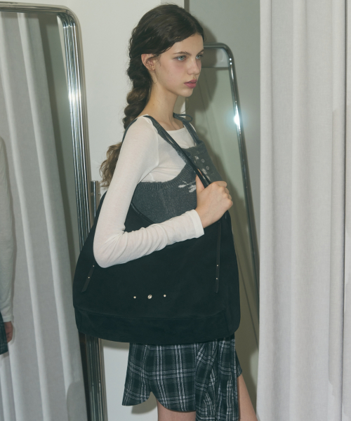 스웨이드 쇼퍼 드롭 숄더백 [BLACK]
