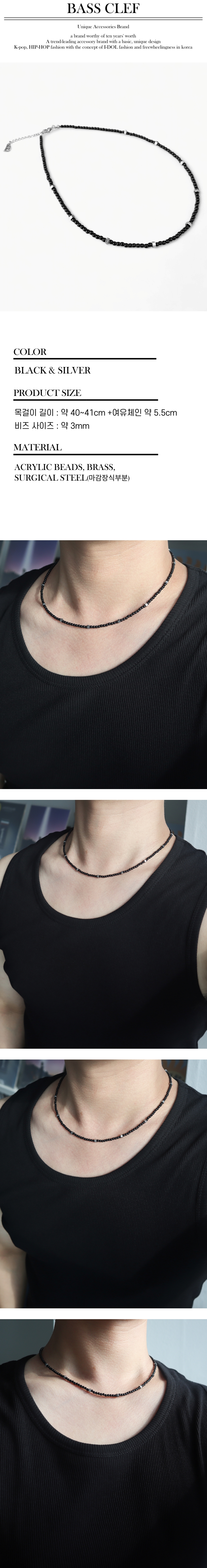 남자 목걸이 블랙 비즈 CLEF FUSION SPARK NEC