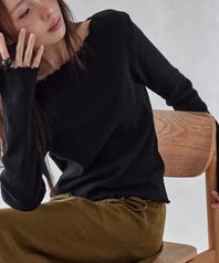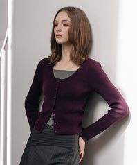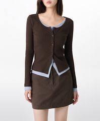 우먼즈 리브드 슬림 스쿱 넥 레이어드 저지 가디건 [브라운]