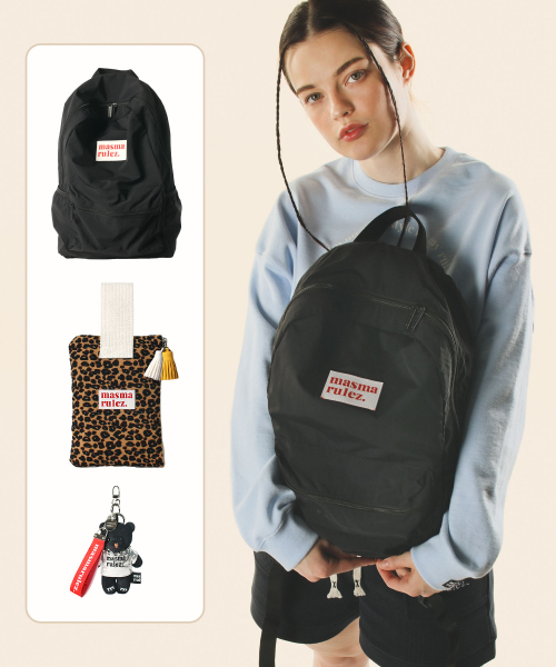 [SET] Daily backpack_Black & Strap pouch_Leopard & BB KEYRING SET
