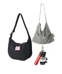 [SET] Halfmoon cross bag_black & Rabbit eco bag_Black flower & BB KEYRING SET