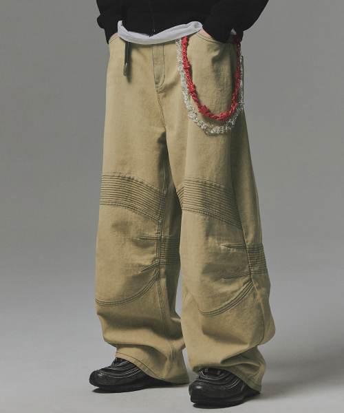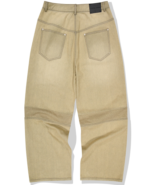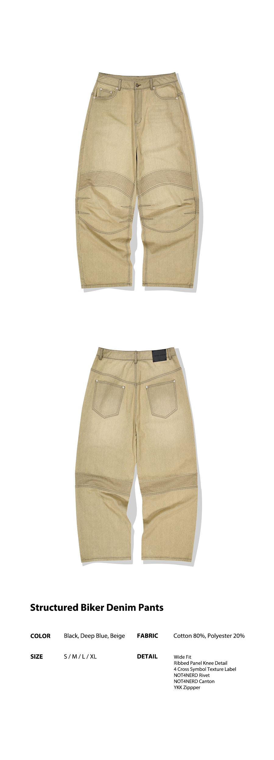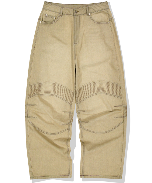 Structured Biker Denim Pants - Beige