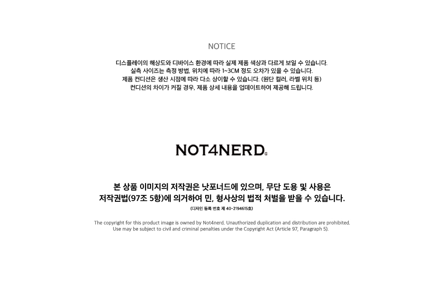 낫포너드(NOT4NERD)는 인간의 다양한 감정과 자유로움을 반항적인 디자인으로 선보이는 브랜드입니다. 4가지 요소 Normal(평범한)/Empty(의미 없는)/Routine(틀에 박힌)/Dry(지루한)에 반항하며, 정해진 틀을 깨고 새로운 흐름이 생기는 순간을 옷을 통해 전달하고자 합니다.