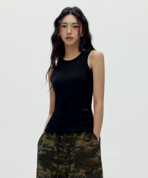 W 베이직 슬림 슬리브리스 탑_블랙