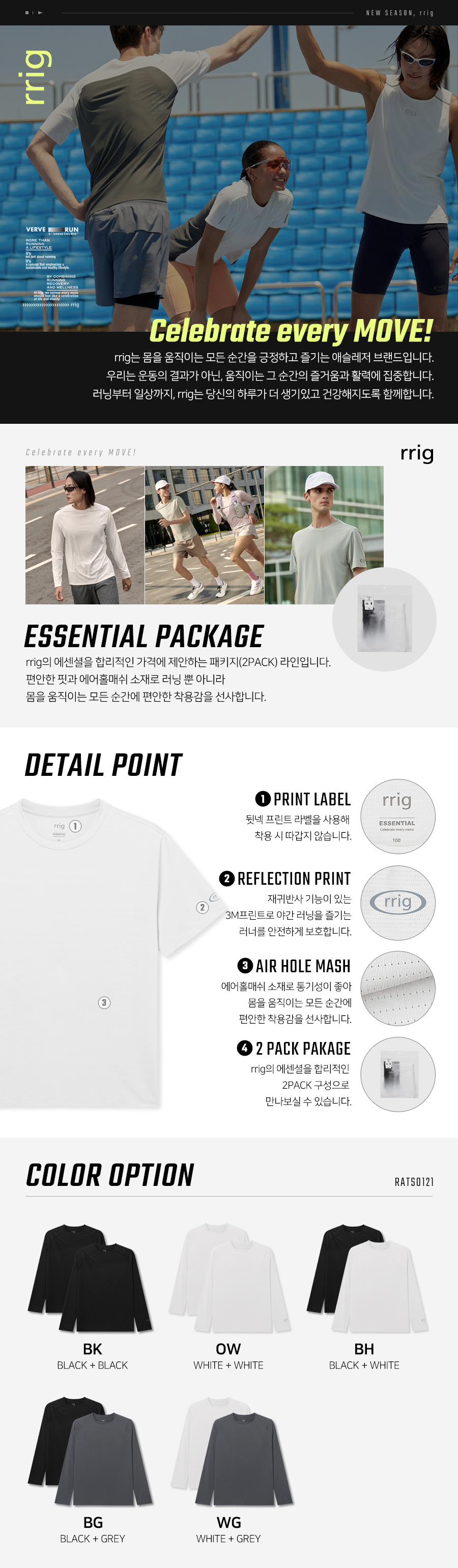 리그(RRIG)는 몸을 움직이는 모든 순간을 긍정하고 즐기는 애슬레저 브랜드입니다. 운동의 결과보다 움직이는 순간의 즐거움과 활력에 집중하며, 러닝부터 일상까지 생기 있고 건강한 하루를 함께합니다.