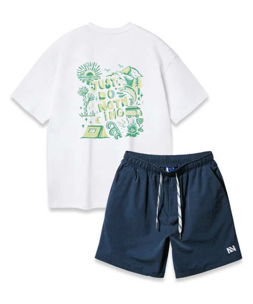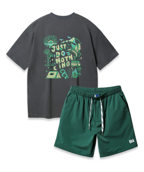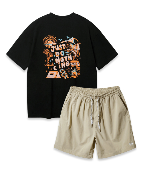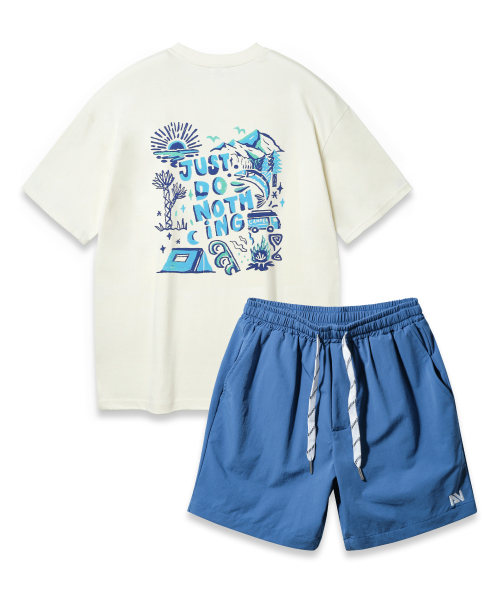 [SET] JUST DO NOTHING 오버핏 반팔티 스트링 포인트 우븐 반바지 셋업