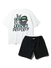 [SET] GOLF MAN 오버핏 반팔티 코튼 밴딩 스웨트 반바지 셋업