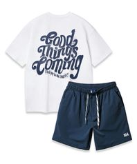 [SET] 굿 띵스 커밍 오버핏 반팔티 스트링 포인트 우븐 반바지 셋업