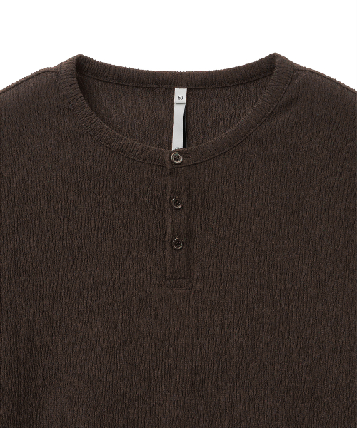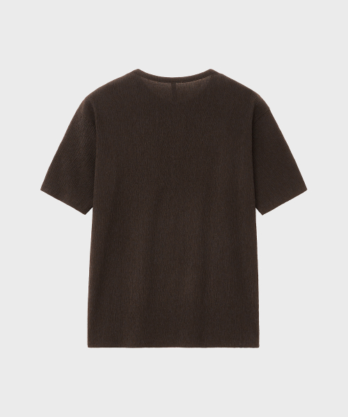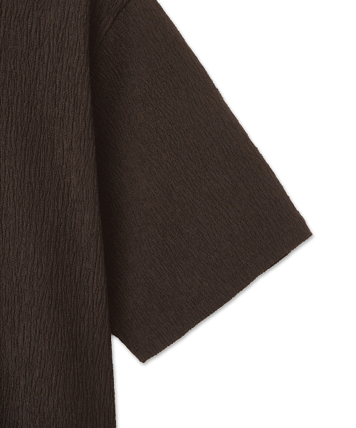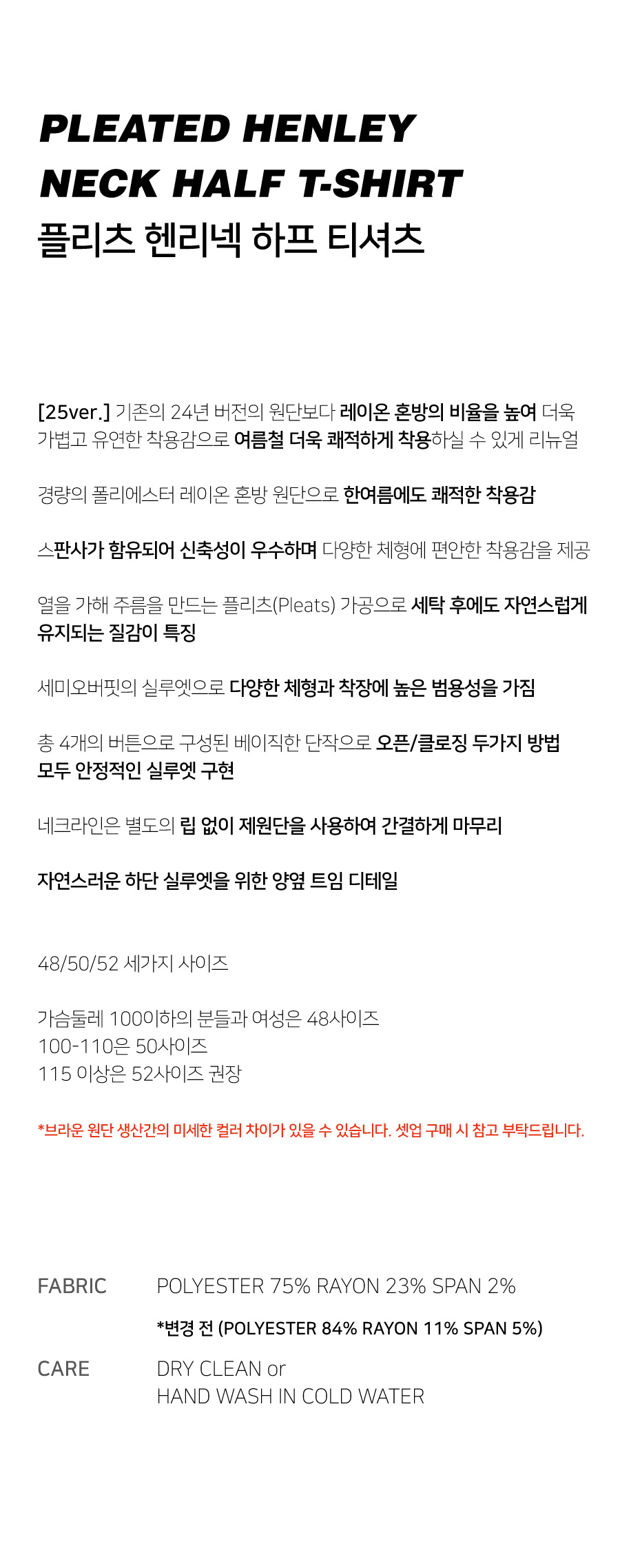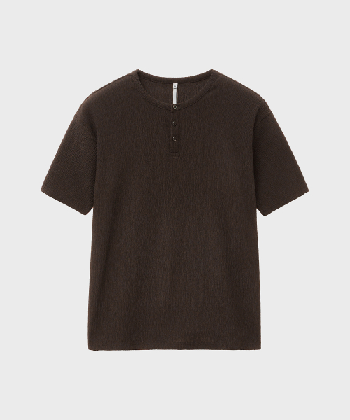 플리츠 헨리넥 하프 티셔츠 (브라운)