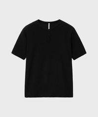 플리츠 헨리넥 하프 티셔츠 (블랙)