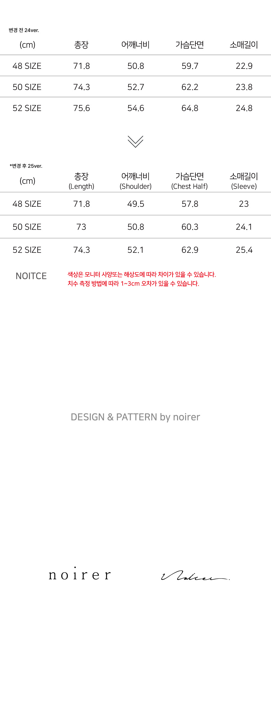 NOIRER(노이어)는 noir + er’로 불어 ‘noir’의 사전적 의미인 ‘농후한, 짙은, 어두운’이란 단어에, 만드는 사람인 ‘-er’을 붙인 합성어로 말 그대로 해석하면 ‘짙은 옷을 만드는 사람’으로 우리에게 옷이란 입는 사람의 철학과 살아온 과거가 그리고 앞으로의 삶에 대한 조용한 의지가 담겨있다.
