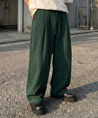 컬러풀 코듀로이 스트링 와이드 팬츠 그린