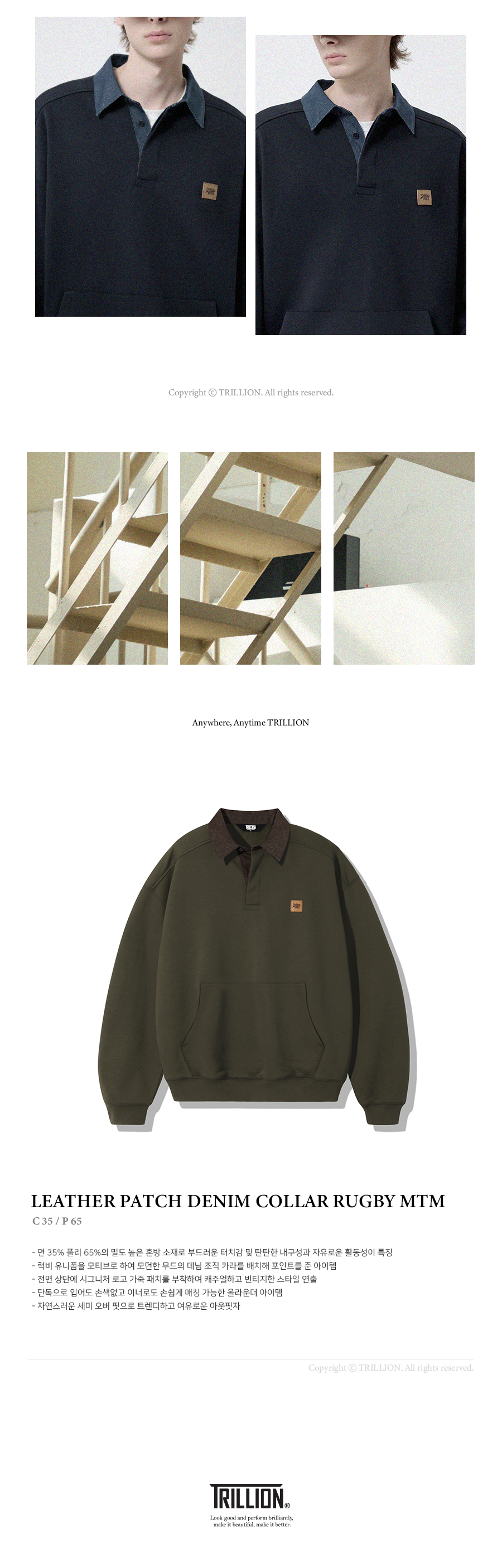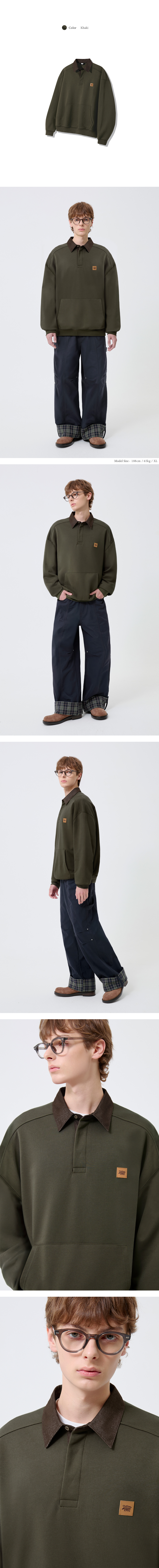 레더 패치 데님 카라 럭비 맨투맨_카키