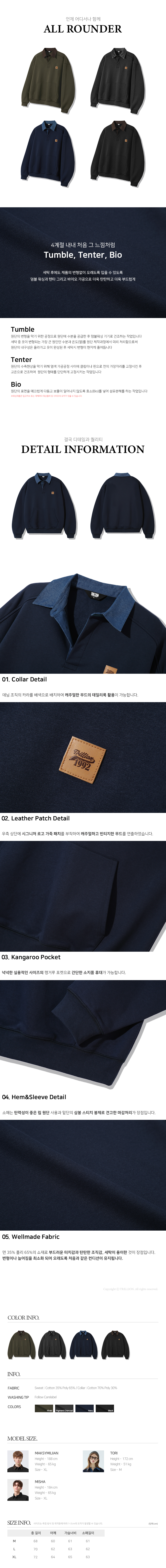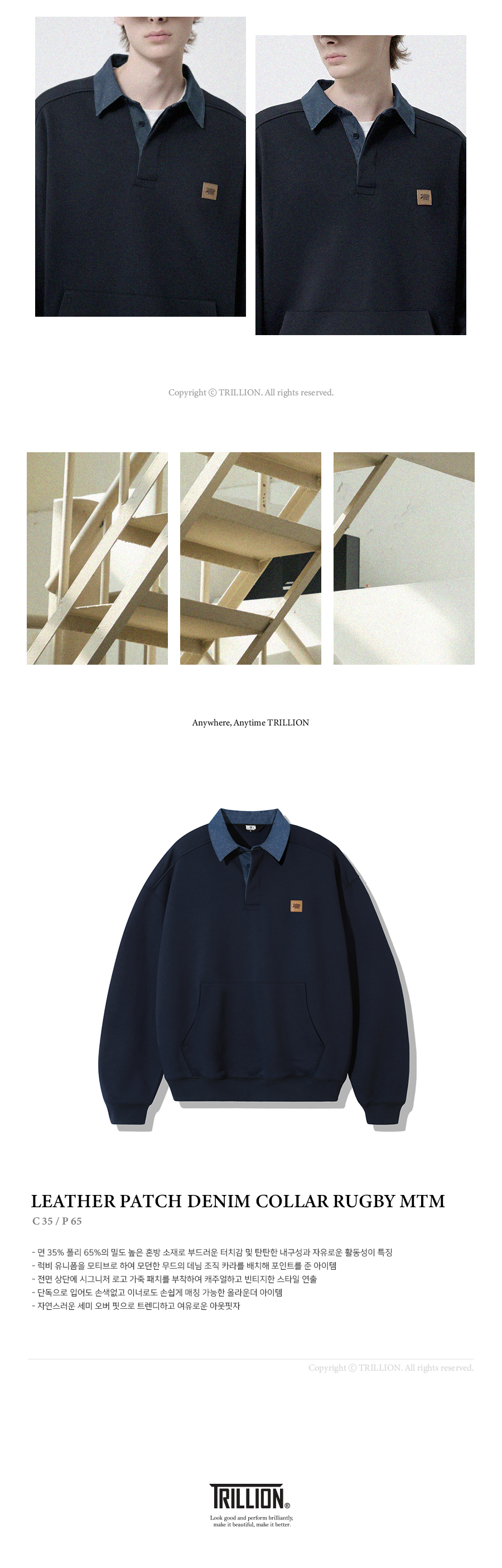 레더 패치 데님 카라 럭비 맨투맨_네이비