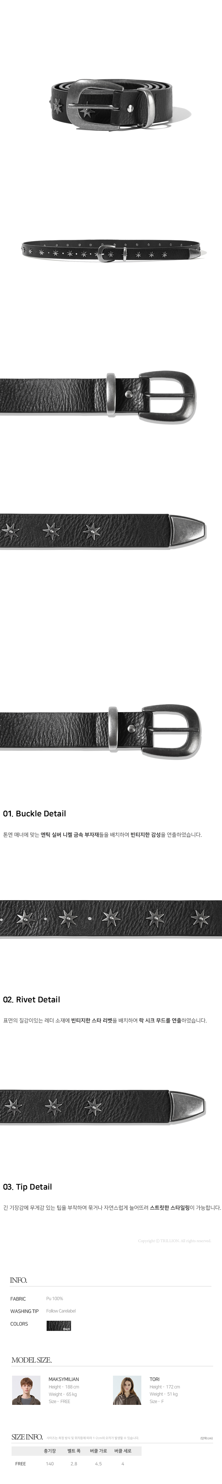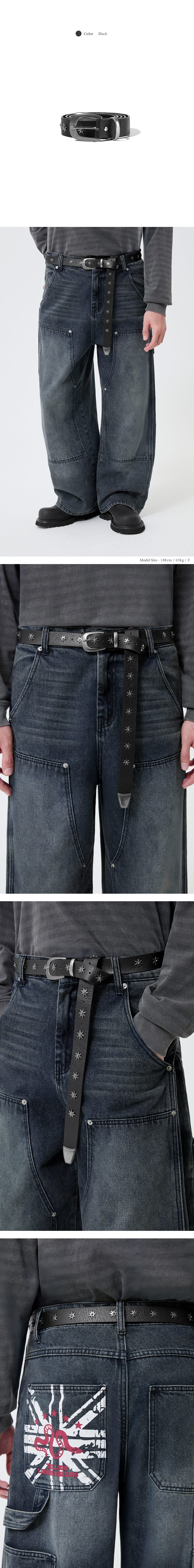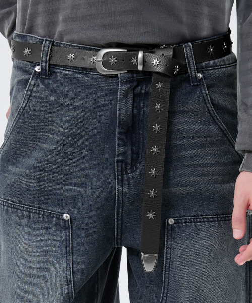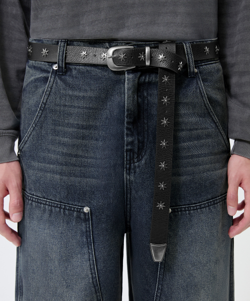 빈티지 스타 리벳 레더 벨트_블랙