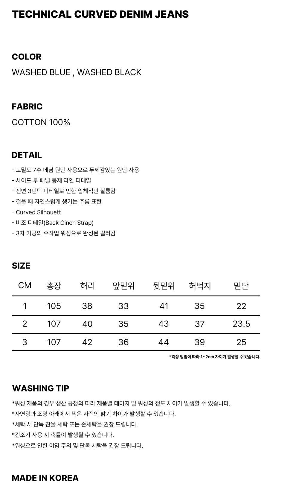 *워싱 제품의 경우 생산 공정의 따라 제품별 데미지 및 워싱의 정도 차이가 발생할 수 있습니다.