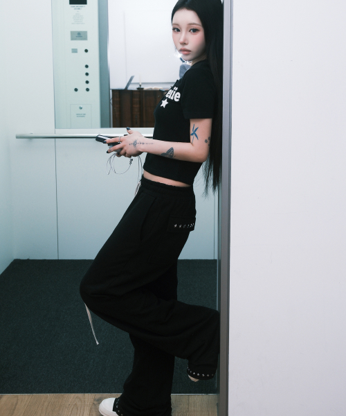 [레이 PICK] Side shirring string mini skirt pants set BLACK