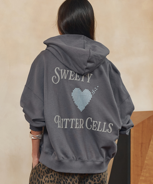 스캐터 하트 후드집업-다크 그레이