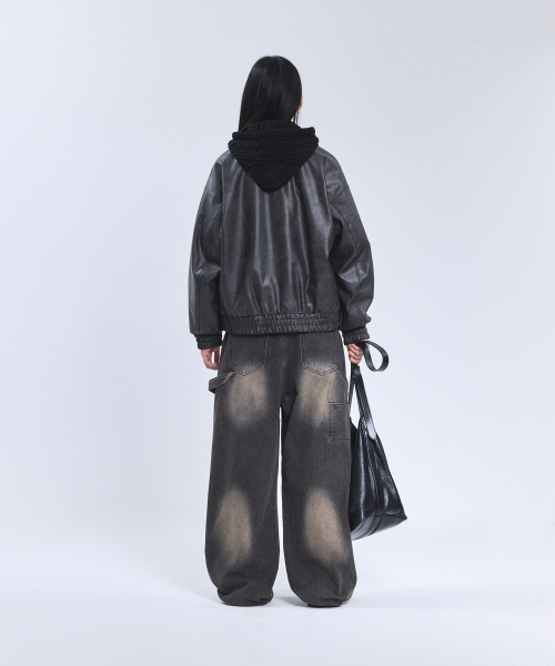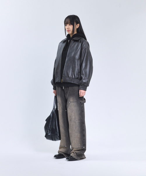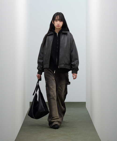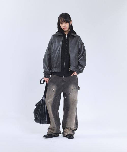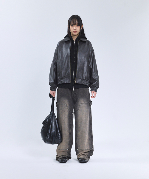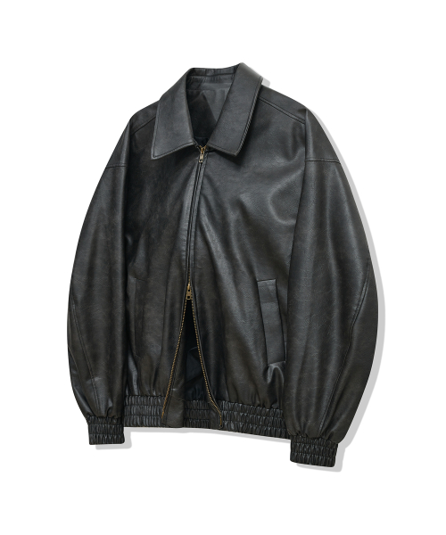 87-STAN009 [리뉴얼] 스탠다드 블루종 레더 자켓 빈티지 블랙