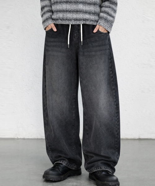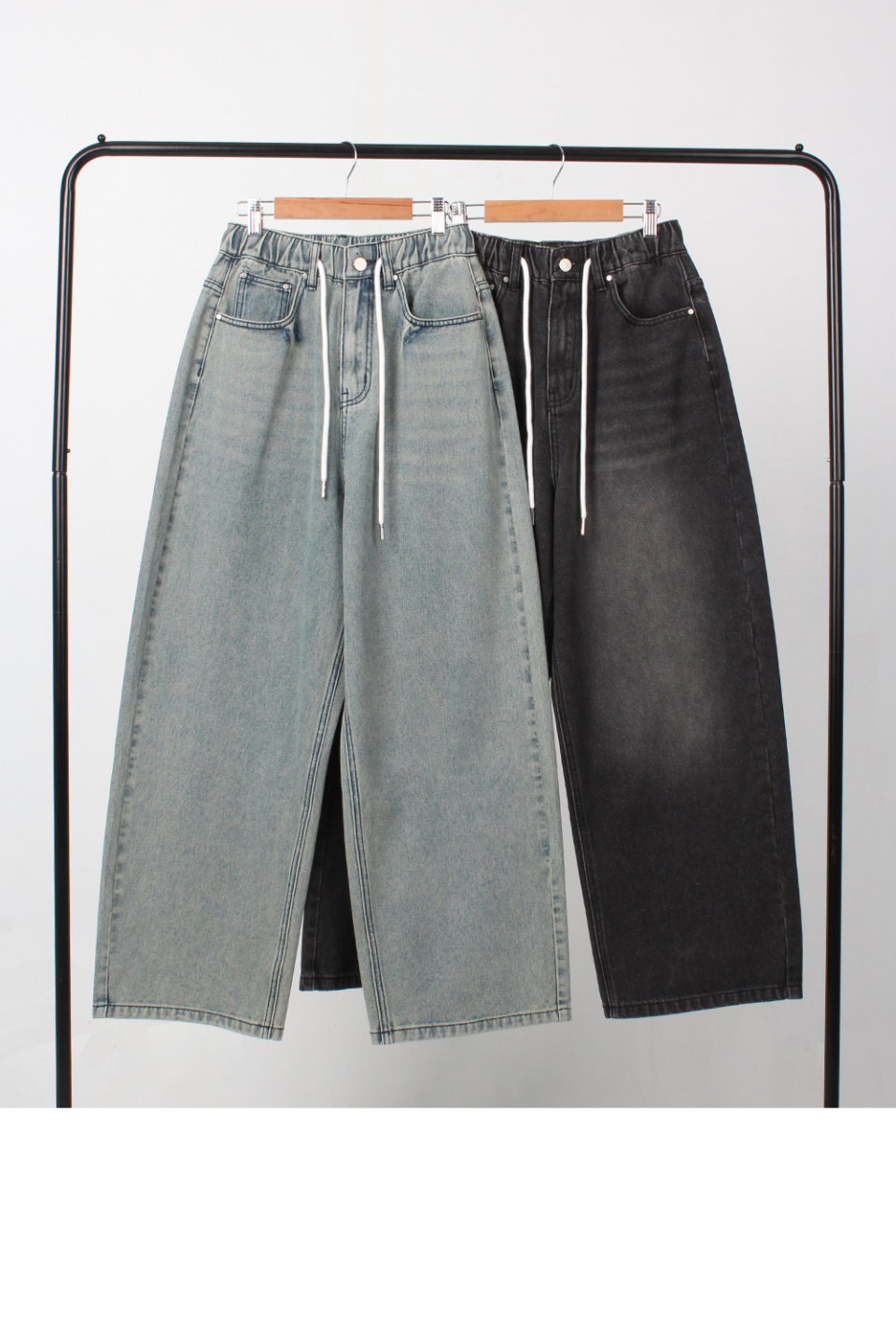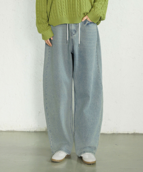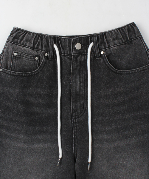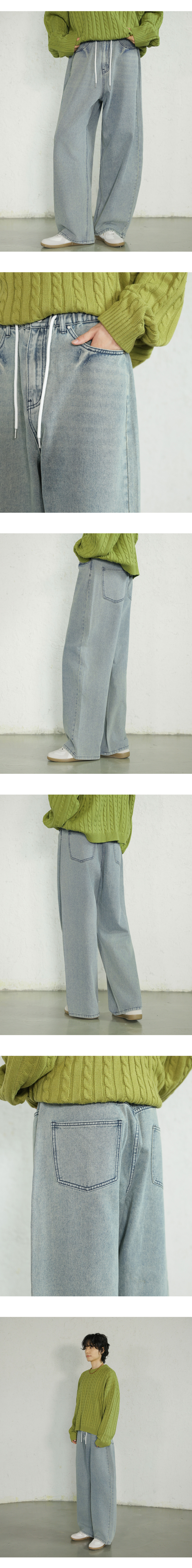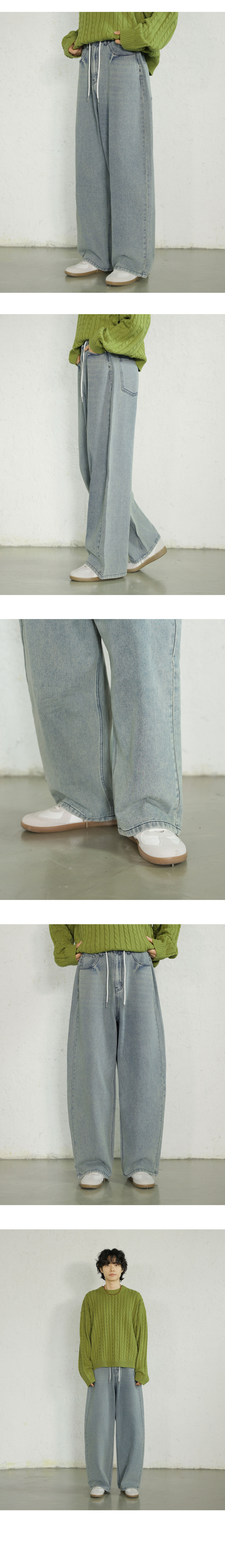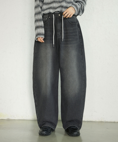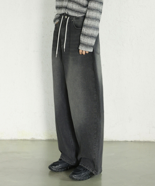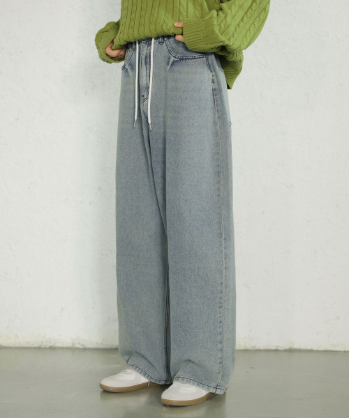 에센셜 스트링 밴딩 롱 와이드 데님 팬츠_2Color