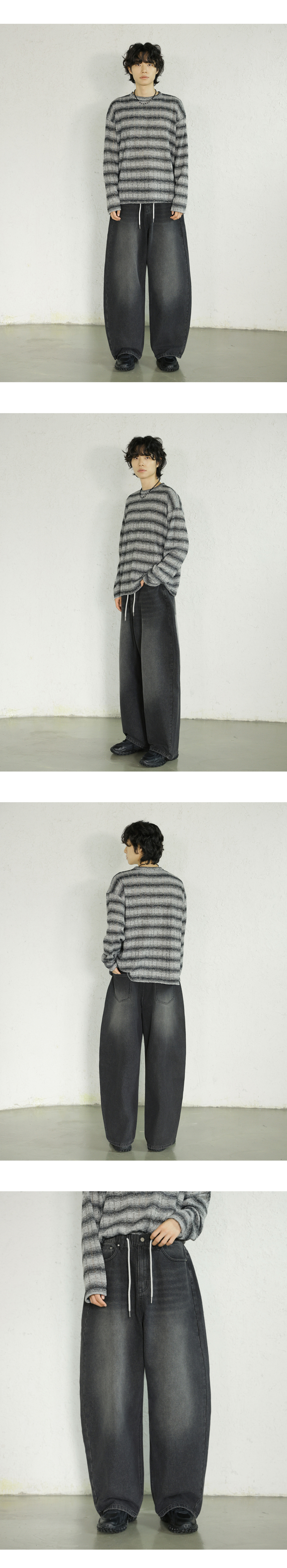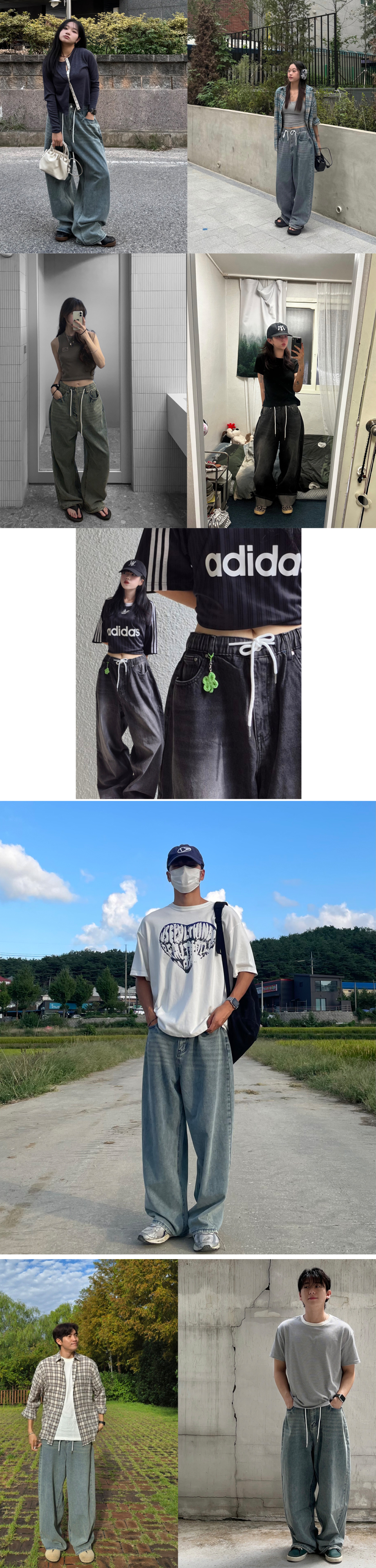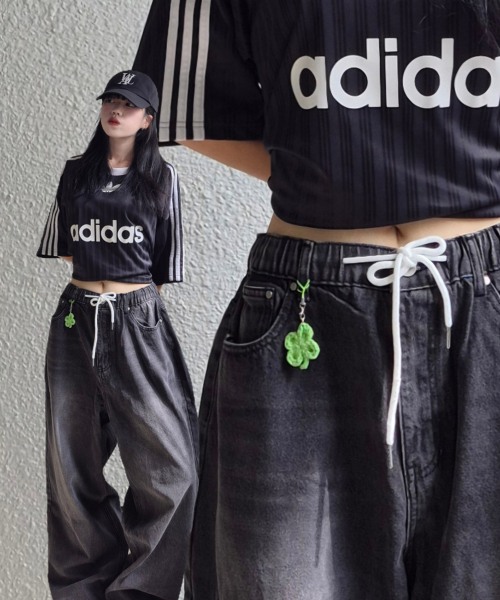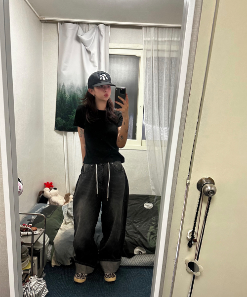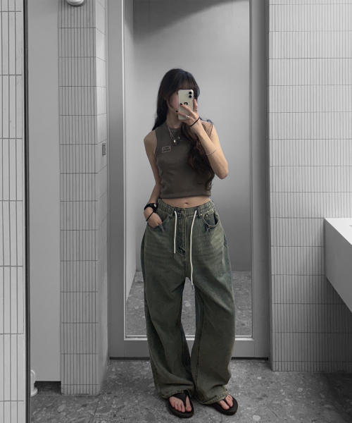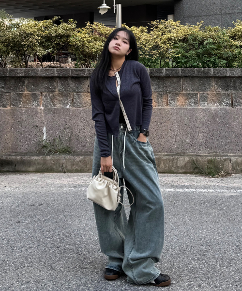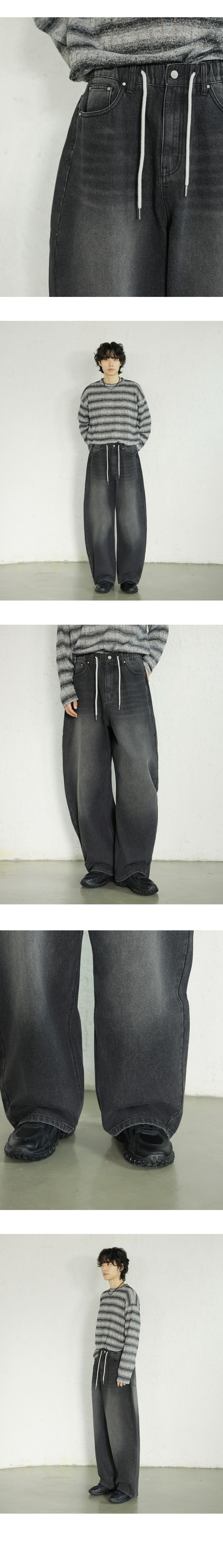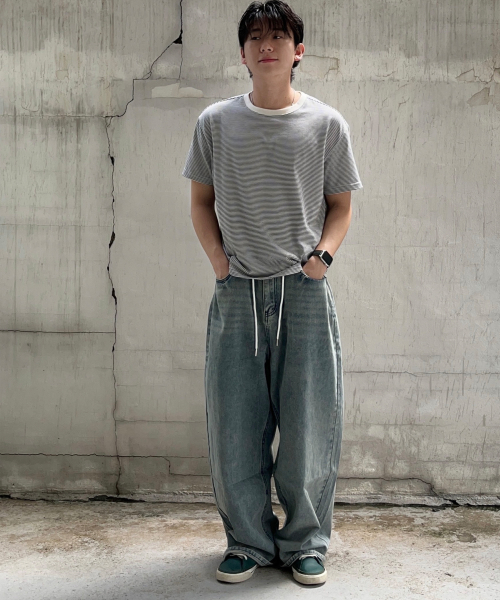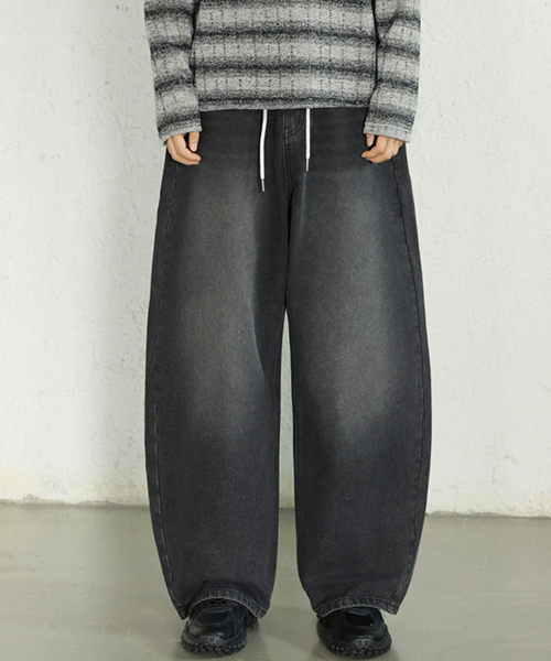 에센셜 스트링 밴딩 롱 와이드 데님 팬츠_2Color