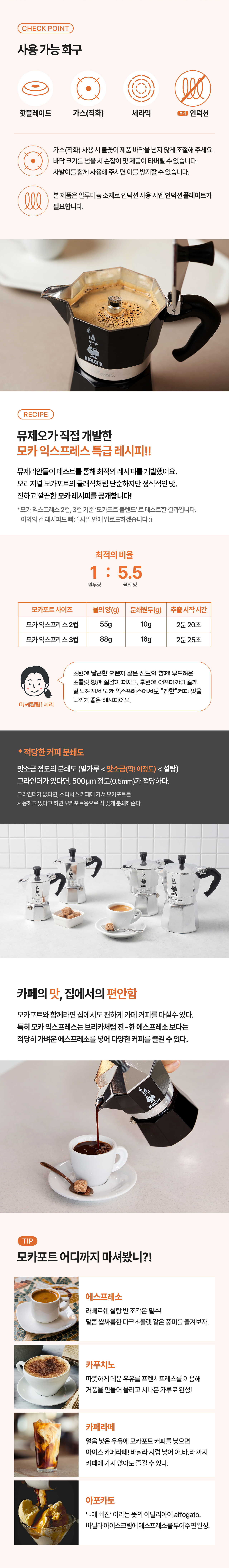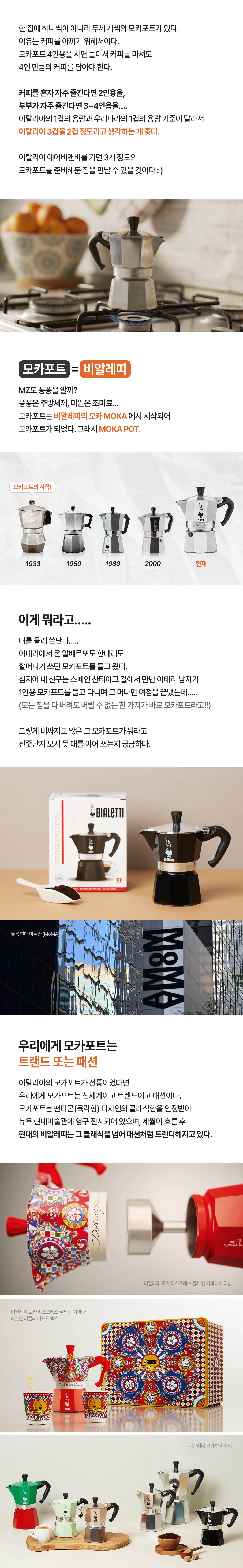 비알레띠(BIALETTI)는 오랜 전통을 가진 모카포트의 대표적인 브랜드입니다. 세계 최초로 가정용 에스프레소 커피메이커를 개발한 비알레띠는 1933년에 창립되어, 끊임없는 연구 개발을 통해 전통과 기술 혁신을 겸비한 완벽한 제품을 생산하고 있습니다.
