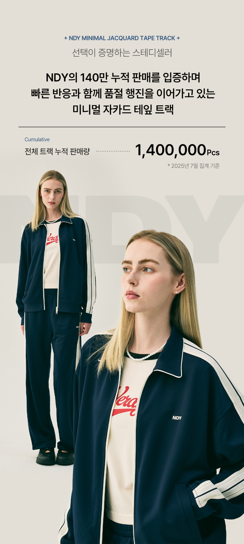 엔디와이(NDY)는 Not Defined Yet'의 줄임말로 정의되지 않은 상태를 의미하며, 동시에 무한한 가능성을 상징합니다. 단순한 트레이닝복을 넘어, 클래식하고 위트 있는 디자인과 감각적인 핏으로 아무것도 규정하지 않음으로써 모든 것을 수용하는 브랜드입니다.