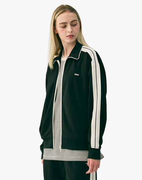 미니멀 자카드 테잎 트랙 탑 블랙